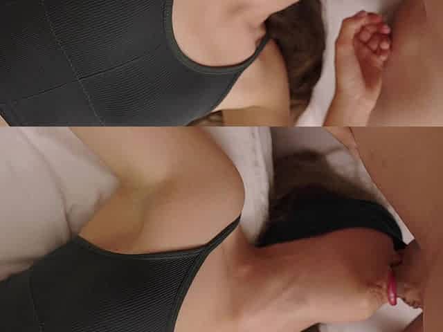 Busty teens sucking and jerk off my big dick closeup at the gym