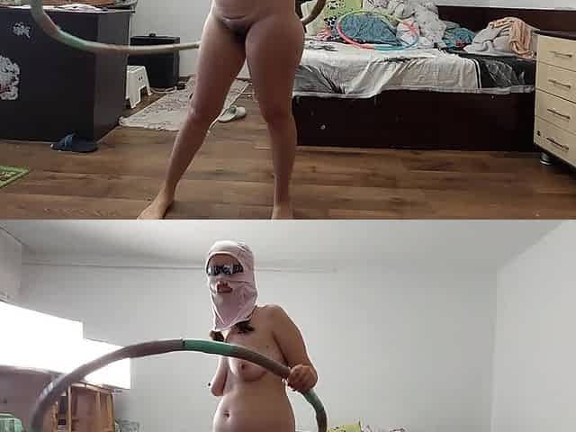 Sexy Wife Workout at Home Naked. Amateur Wife Masturbates with Her Fingers in Her Pussy