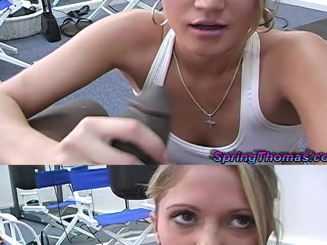 Naughty petite sporty blonde Spring Thomas ravaged by a black dick