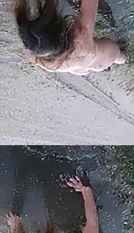 hairy stud flexxing his sweaty swollen muscles after gym