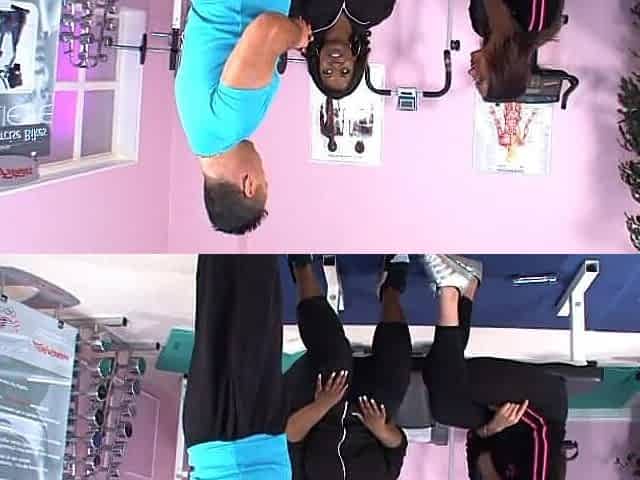 Sporty Brunette Pleasures Tattooed Black Dude In The Gym With Lady Dee