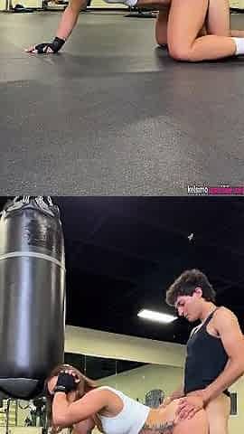 Gym goddess reislin teaches by smoking her trainer's cock then gam job riding on top and Doggy Style