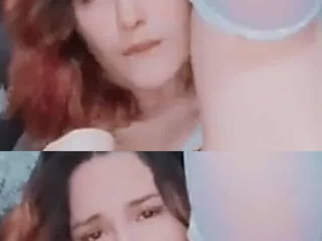 Gorgeous redhead girlfriend Amber Stark is touching her shaved pussy