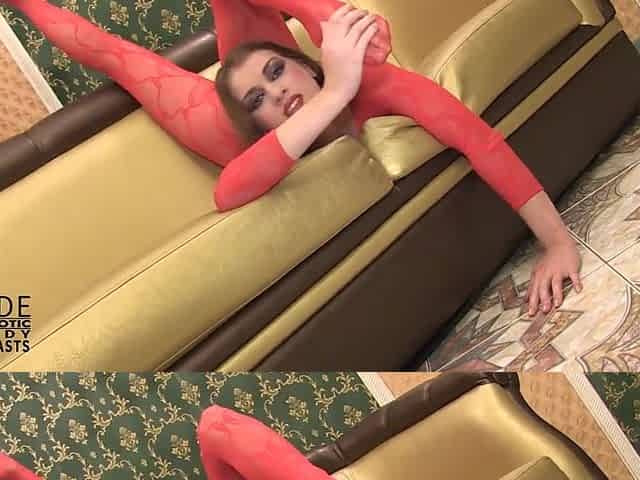 TeamSkeet AllStars - Flexible slut in red latex outfit splits on hard cock and twerks
