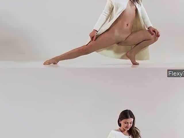 Flawless body teen Irina Galkina stretching her legs on floor bare