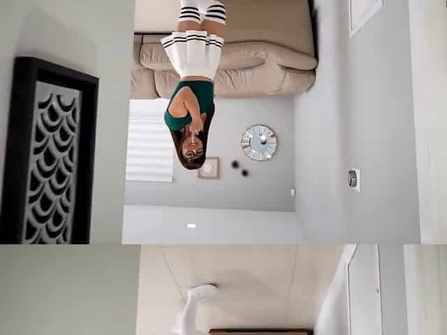 Katie Shows Off Her Flexibility In Front of the Hotel Window