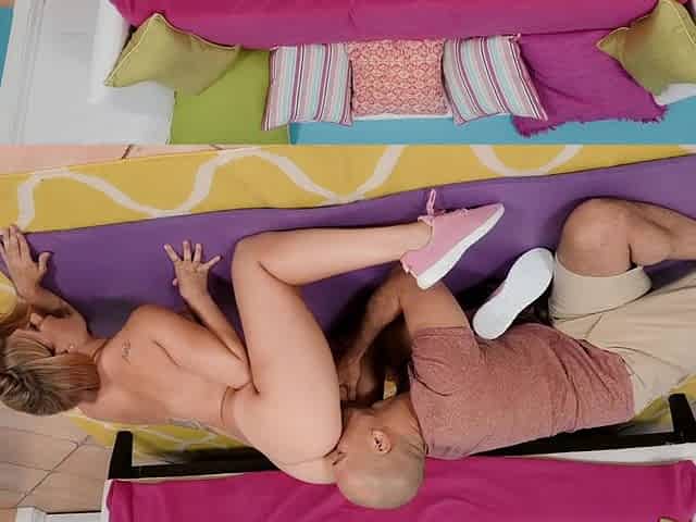 Abbey moans while having rough anal sex with her BF on the sofa