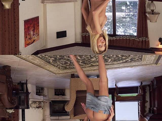 Flexible Blond Hair Girl Hair Girl Takes Many Positions