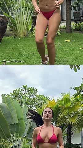 Morning Fitness in Hot Bikini, Sweating, Swimming
