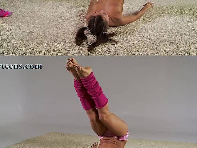 Oriental babe Laleh does gymnastics and shows her shaved beaver