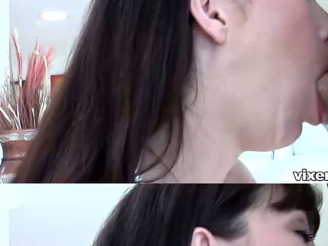 Mesmerizing flexible brunette girlie gives BJ and rides fat dick on top