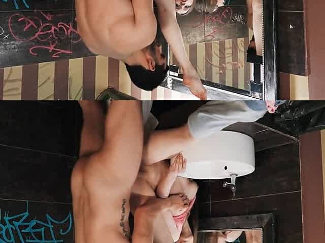Flexible girl fucking in a public restroom like crazy