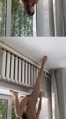 Caught a gymnast licking own snatch and screwed her in supple poses