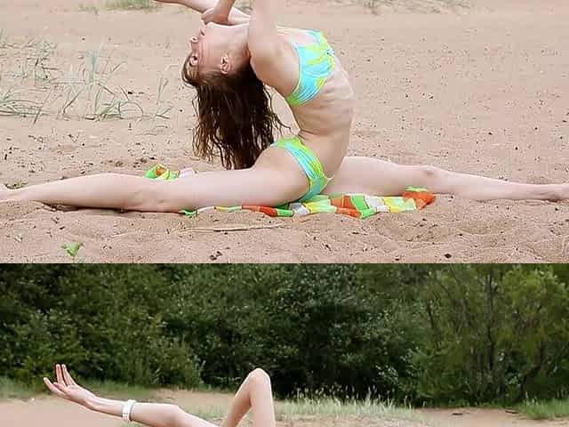 Flexible teen at the beach and in bed