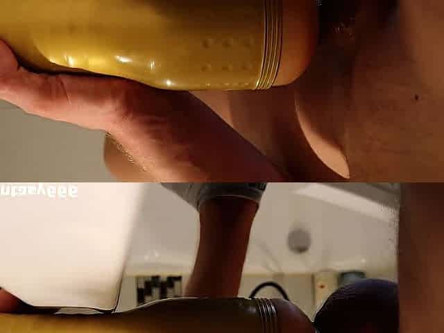 Supple fleslight banging with biggest jizz flow and intensive groaning