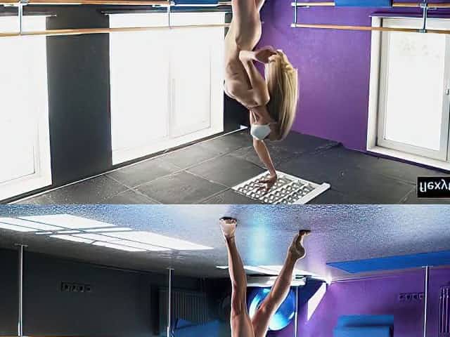 Skinny with big tits! Perfect body gymnast is so flexible!!!