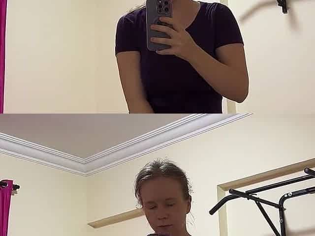 Flexible girlfriend Miami is trying to stretch her shaved pussy