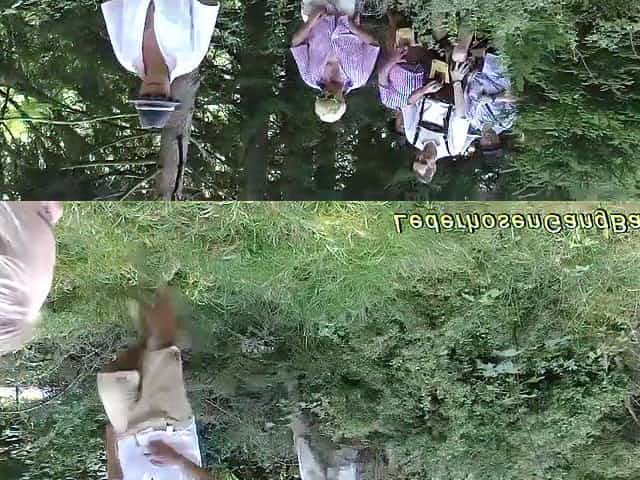Euro beauty shows off her shaved little pussy in the green fields