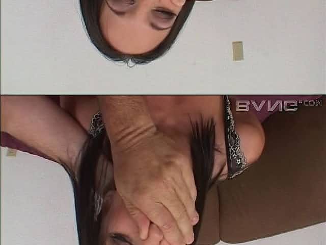 Flexible dark haired chick gets her asshole slammed in mish position