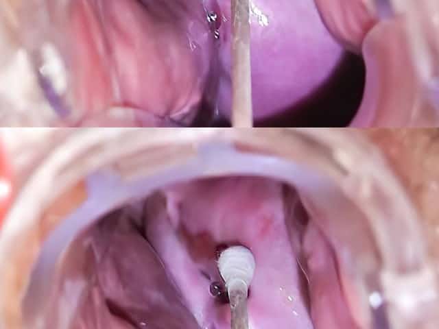 Gyno mirror in her sticky snatch