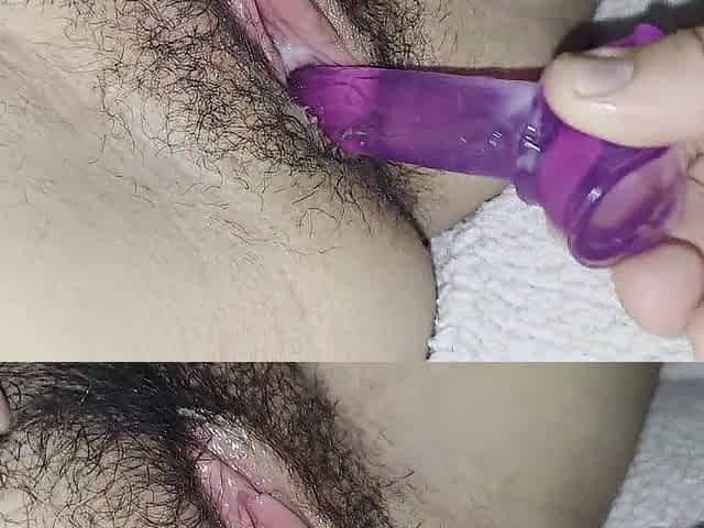 Unshaved Chunky Vagina Cumming with Sex toy