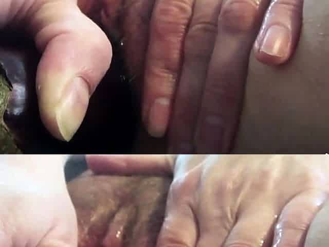 Mature Amateur Hairy Girl Masturbating with Aubergine
