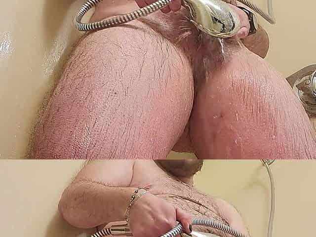 FTM transman jerks off large clitoris T Ramrod using showerhead