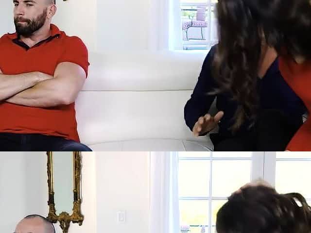 Slutty nerdy busty blonde housewife turns man on to ride his strong cock