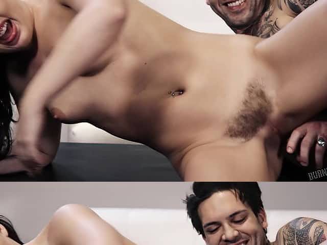 A tattooed dude is fucking a chick with a hairy pussy