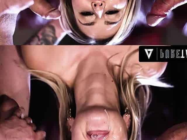 That Big Blonde Slut Gets Submitted by Two Big Hard Cocks