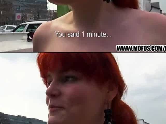 Public pickup redhead rides dick