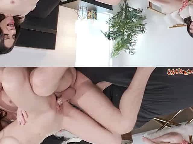 I Lie on My Stepbrother Bed so He Can Fuck My Ass. I Make Him Cum with My Big Tits