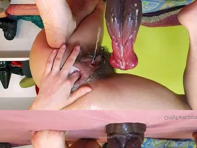 Massive Dildo Stretches Tight Creamy Pussy To Orgasm (+butt Plug)