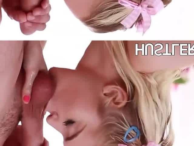 Blonde babe sticks in her big mouth and tight ass a huge cock