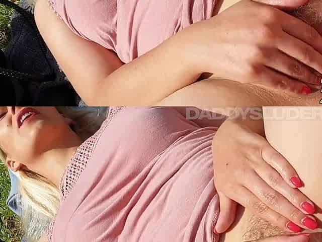 Curly butt and vaginas licked in the garden