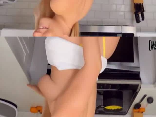 Sexy Mom Prepares Breakfast, Hairy Pussy, Big Tits. Sexy Woman Empties House