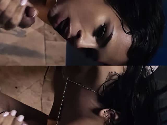 Hot Black Teen Fucks Older White Dick in Bathroom for Facial
