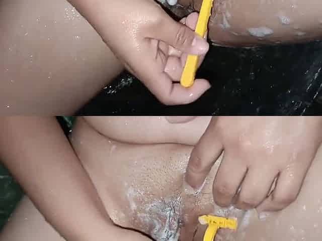 Smooth moves in the bathroom as she opts for a clean shave