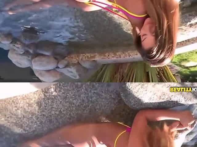 Brazilian beauty Bibi Hourani gets playful with her furry body
