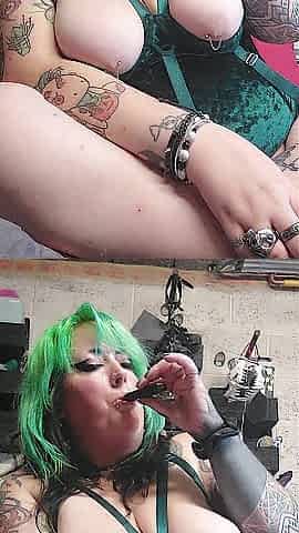 Your overweight neighbor smoke her vape during the time that playing with her large pierced breasts