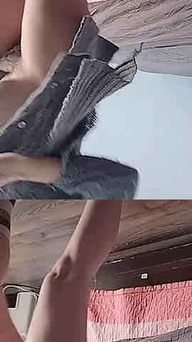 Amateur shaggy hotty with massive love button masturbates on her balcony