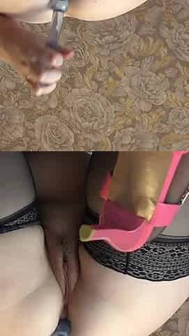 Wife with a large butt gets screw with sex tool in doggy position. PAWG
