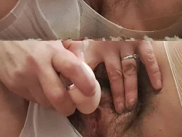 Cumshot on My Hairy Pussy Hotwife