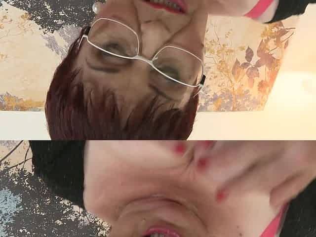 Watch Sylvia Bateman's hairy pussy bounce as she masturbates with her big tits & braces on!