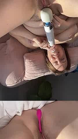 Hairy Cunt Full of Vibrators - Hot Wife Mature MILF Taking Two Vibrators at Once in Her Hairy Old Pussy