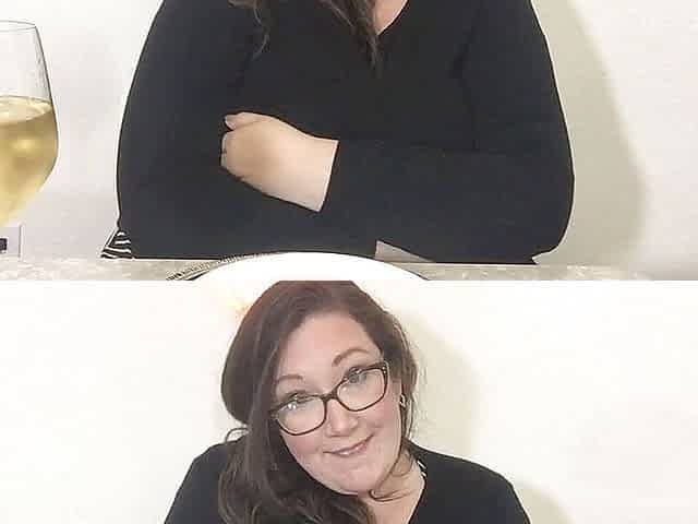 Jen is sitting on a chair and is peeing