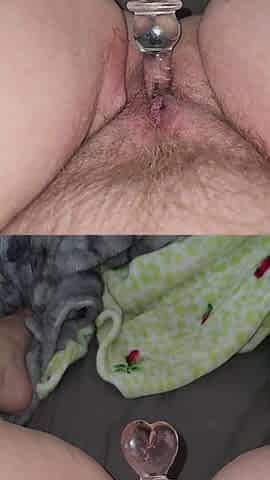 Marvelous curvy cutie uses her recent glass toy with anal pluganal