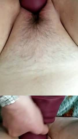 Fucking hairy BBW with dildo, multiple orgasms and squirt.