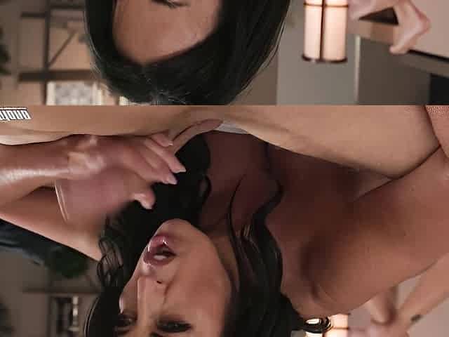 Big-boobed brunette Abi James is enjoying intensive dick-riding