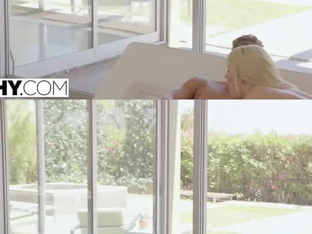 Blonde Bitch In Gorgeous Stockings Masturbates